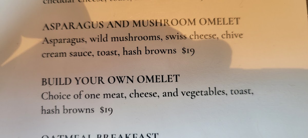 Asparagus, wild mushrooms, swiss cheese, chive cream sauce, toast, hash browns